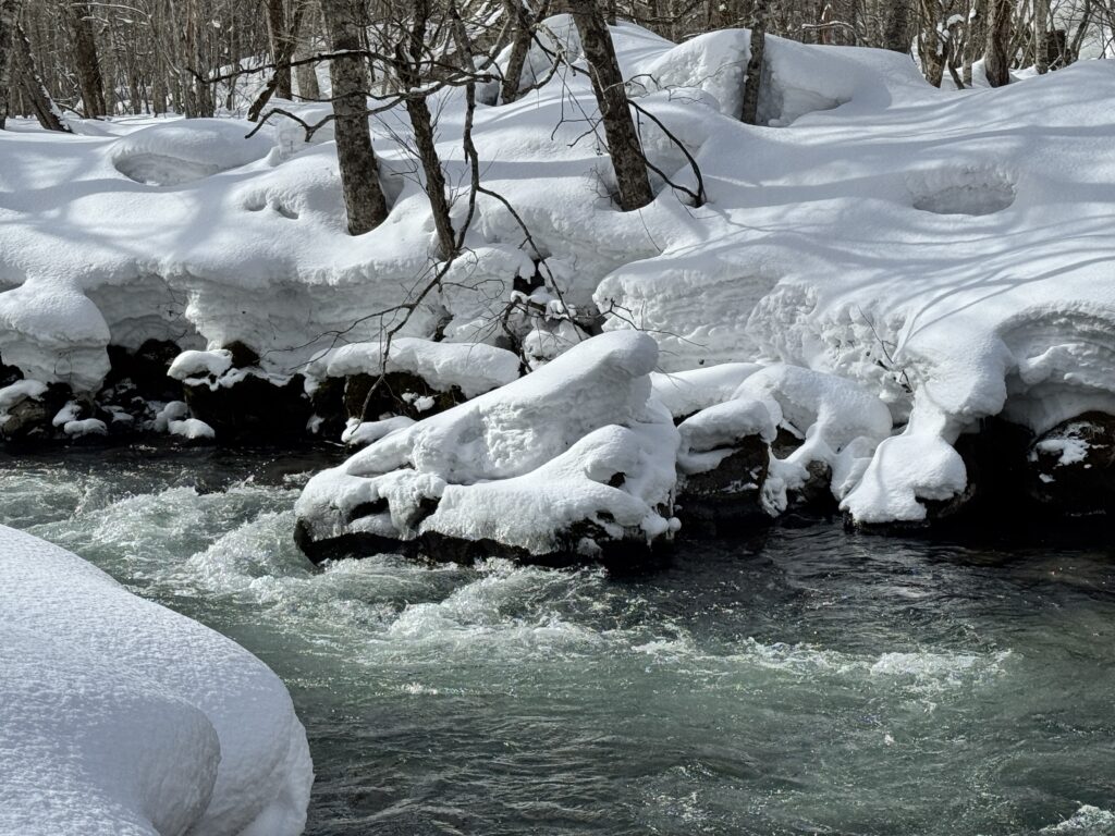First, we traced the Oirase Gorge, usually unreachable in winter. Snow muffled our steps, and the water beside us moved in soft threads. Ice sparkled along the banks. The world felt paused, but not frozen, the stream still whispered, a low song beneath the hush.